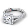 Classic 14K engagement cushion halo ring with split shank in 2ct cushion center lab grown diamonds and 2.50ct total weight.
