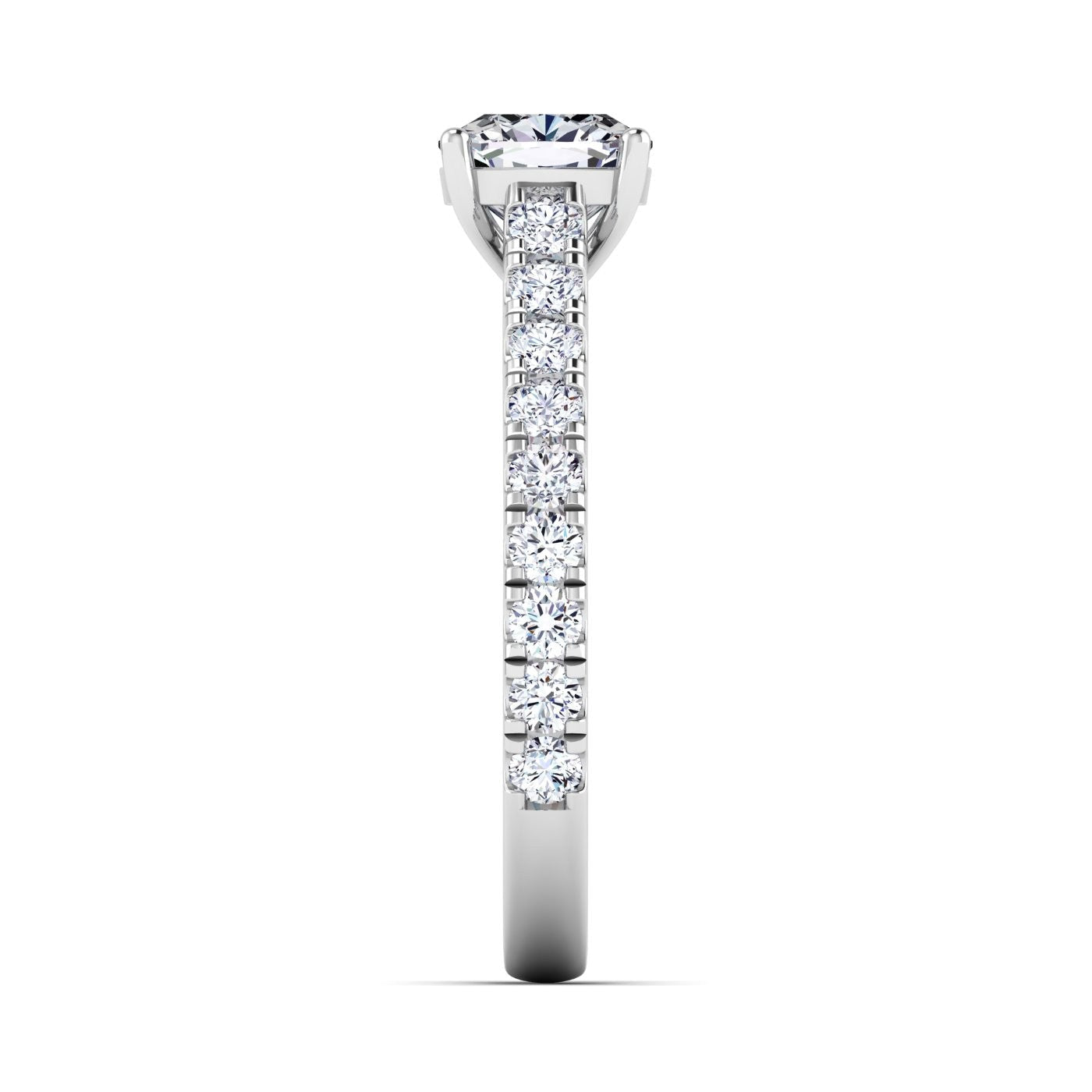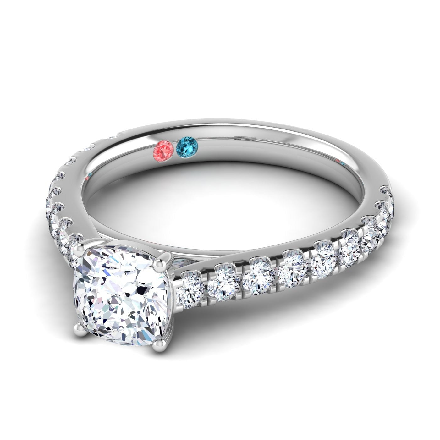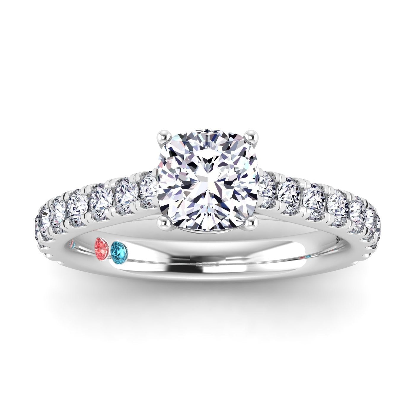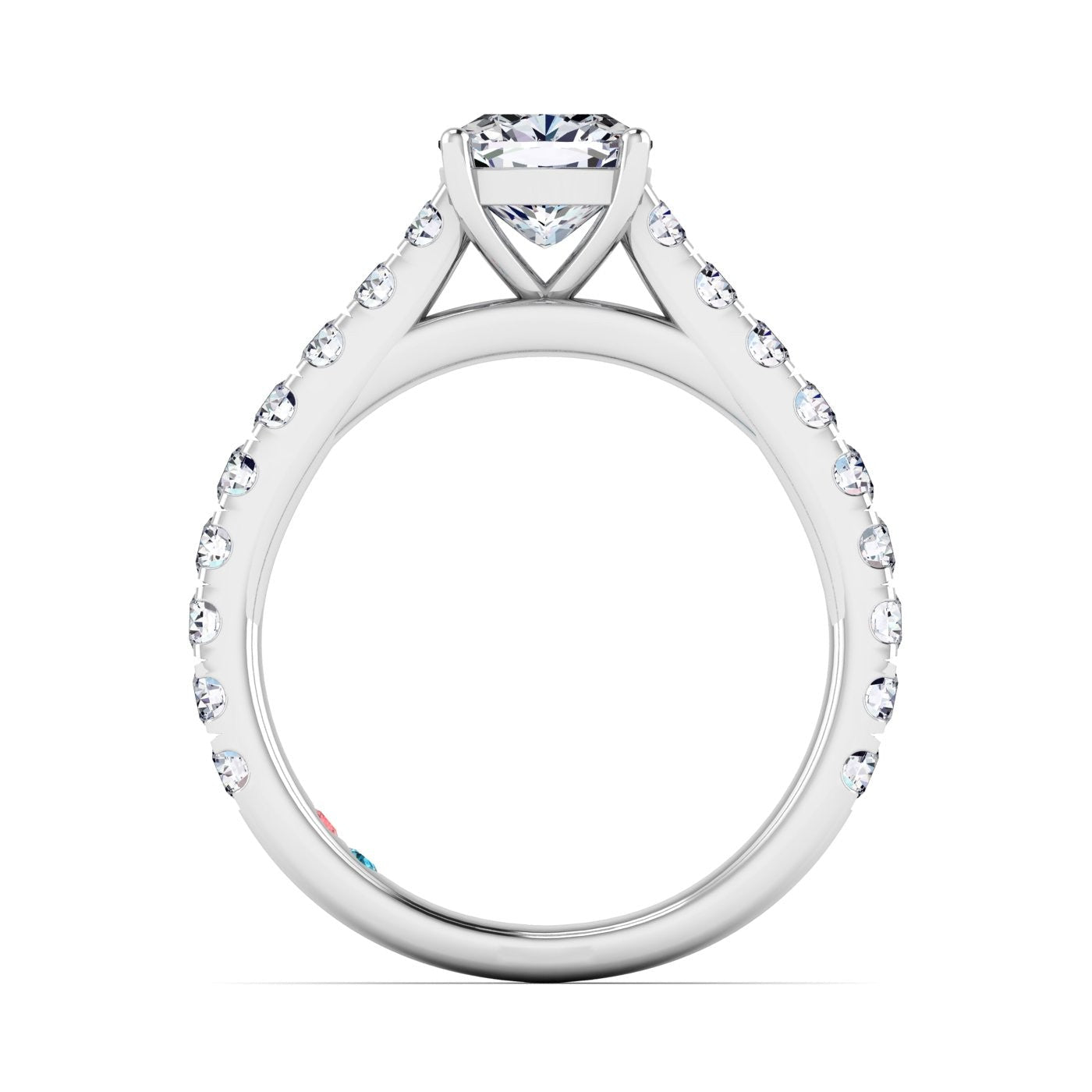 Classic 14K engagement cushion pave ring in 2ct cushion center lab grown diamonds and 2.80ct total carat weight.