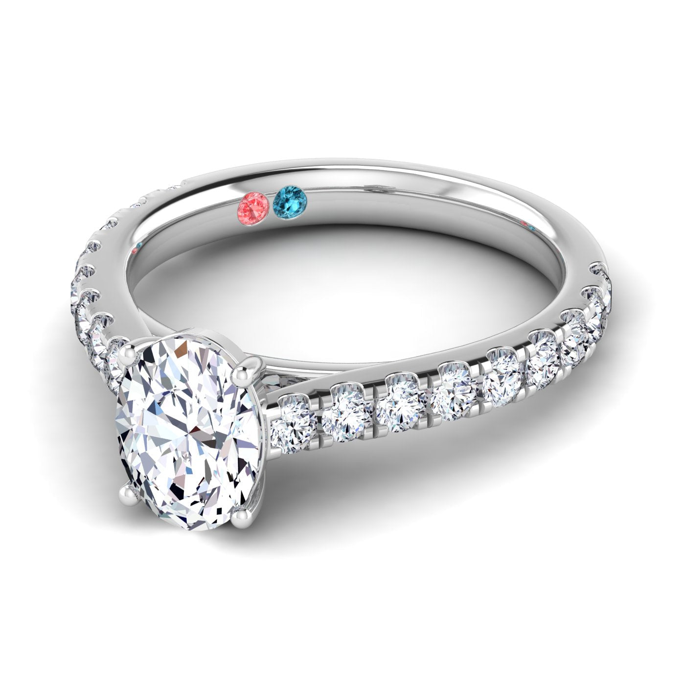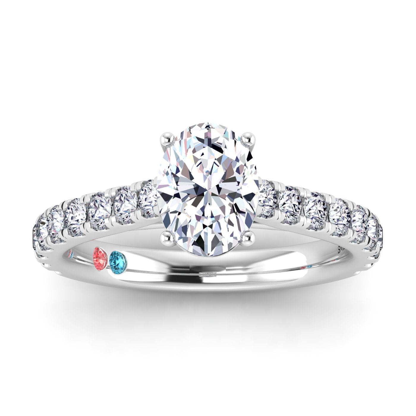 Classic 14K engagement oval pave ring in 2ct oval center lab grown diamonds and 2.80ct total carat weight.