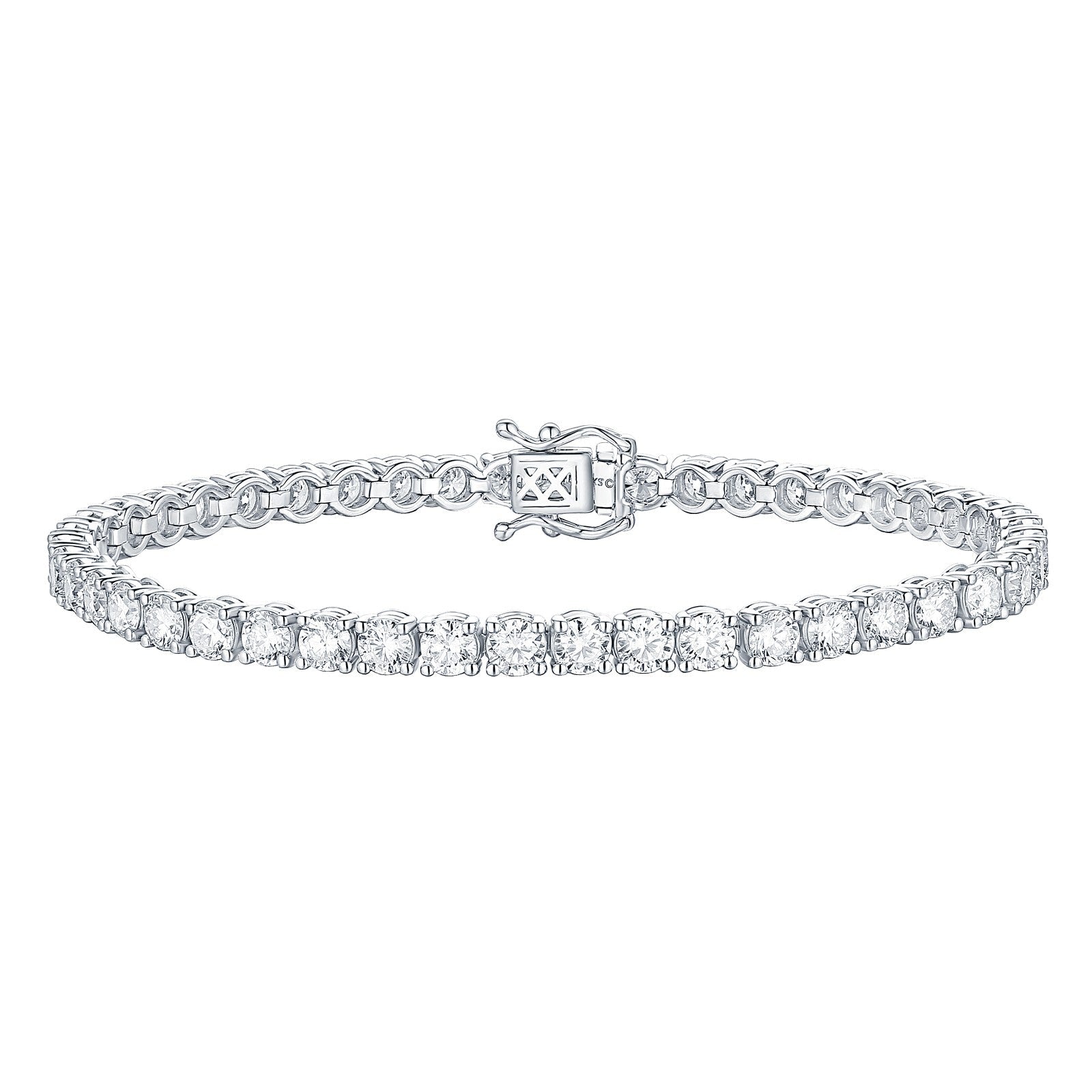 A classic 14K white gold tennis bracelet studded in lab grown diamonds with a 7.00ct total weight.