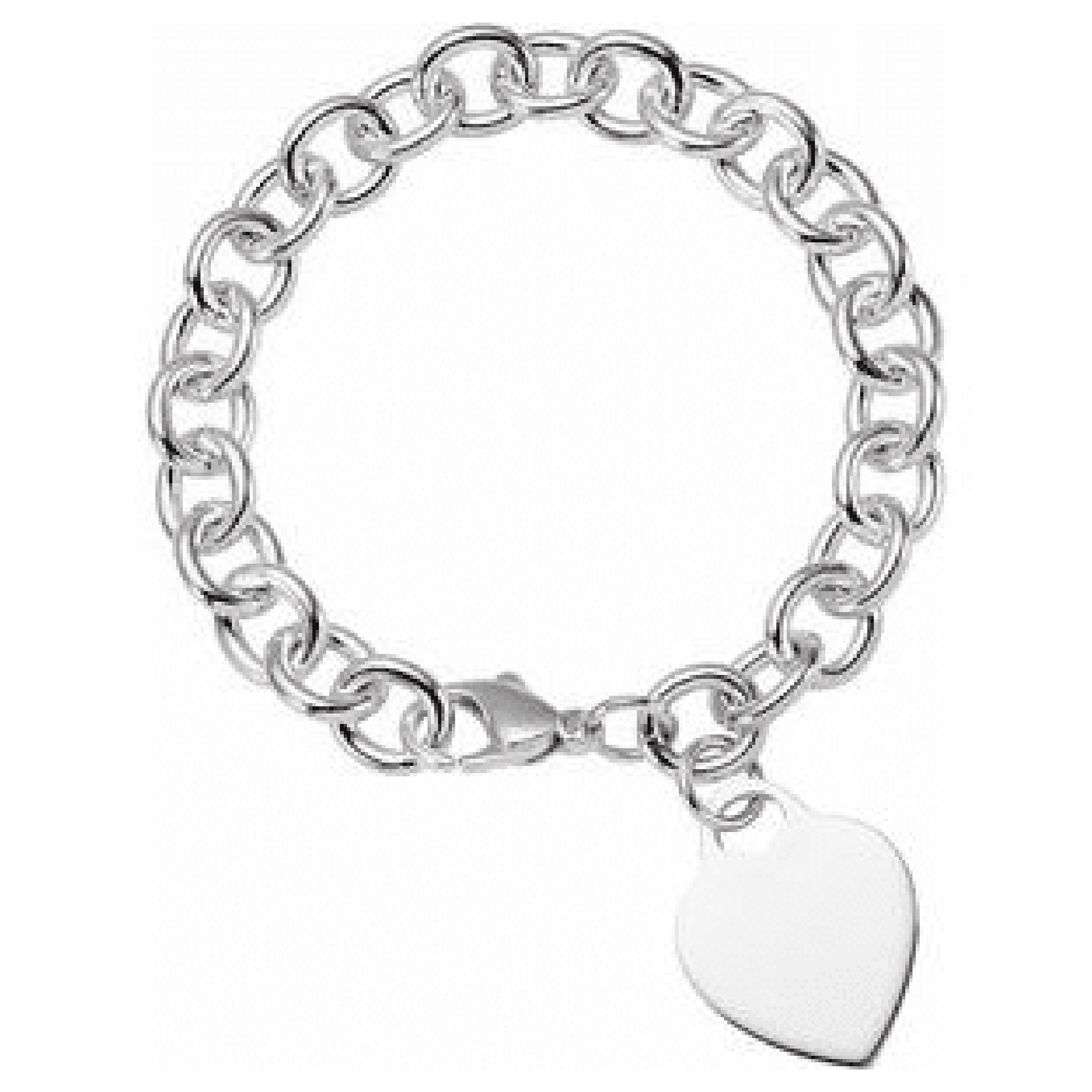Solid sterling silver 7.5 inch bracelet with a sterling silver heart charm.