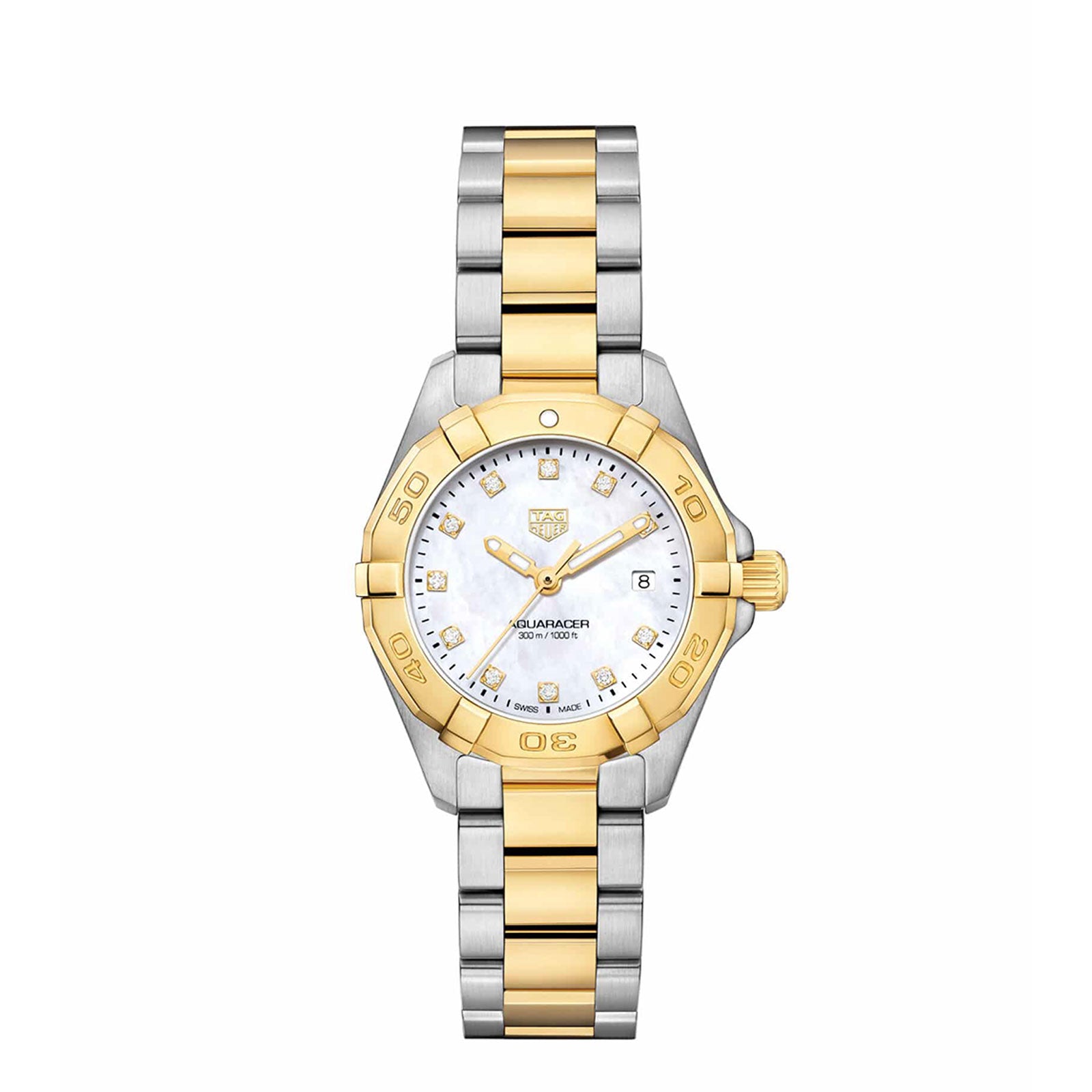 - Bezel: 18K 2N yellow gold alternate finishing 60 minute scale unidirectional turning bezel / white mother of pearl dial with white flange 60 second/minute scale / battery powered