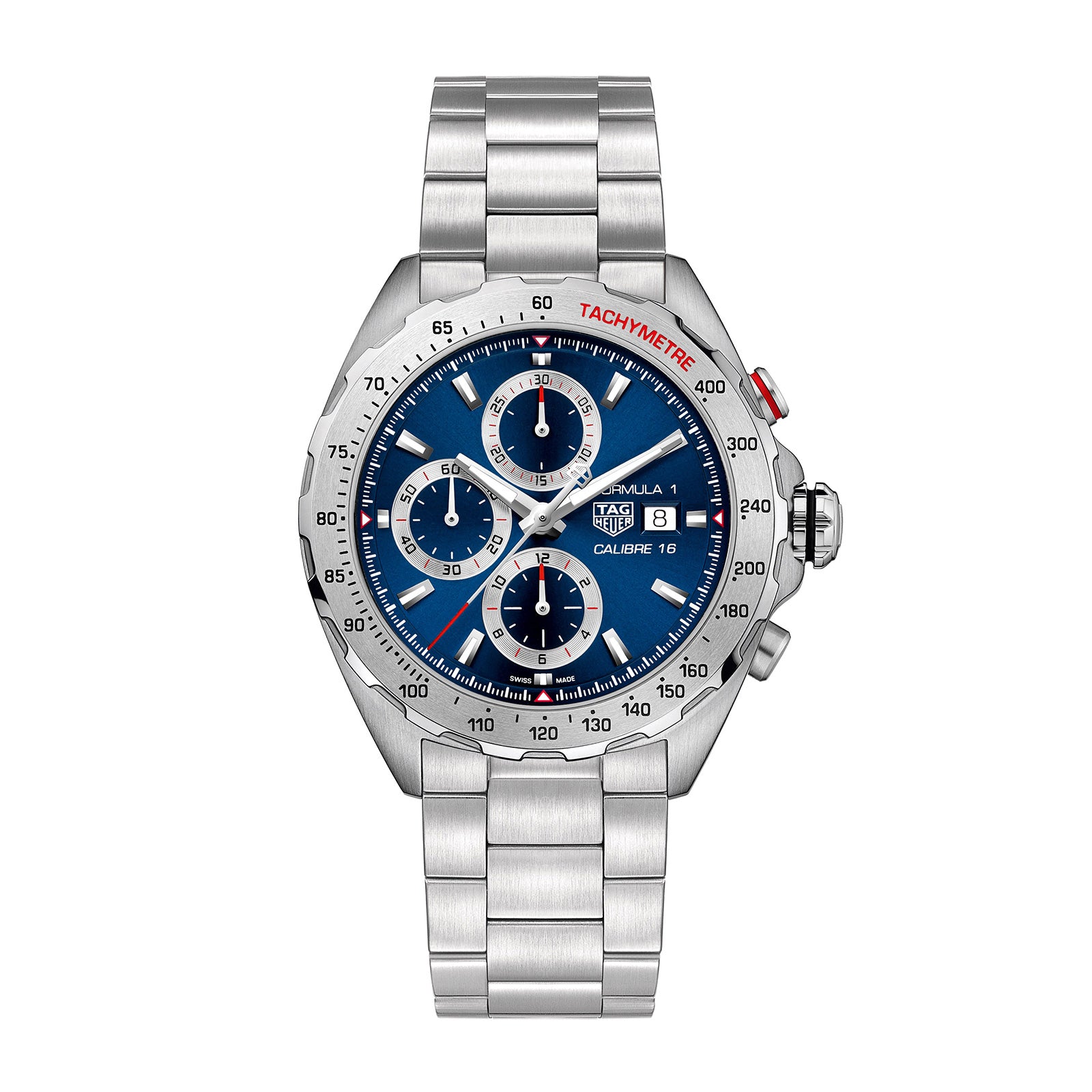 - Bezel: steel alternate finishing tachymeter fixed bezel / blue sunray brushed dial with blue flange with 60 second/minute scale / Calibre 16