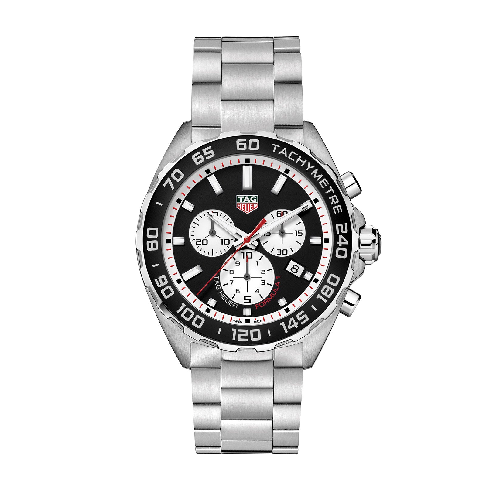 - Bezel: aluminum black alternate finishing tachymeter fixed bezel / black opalin dial with white flange 60 second/minute scale / Battery Powerred