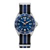 - Bezel: steel alternate finishing tachymeter fixed bezel / blue sunray brushed dial with blue flange 60 second/minute scale / Battery Powerred