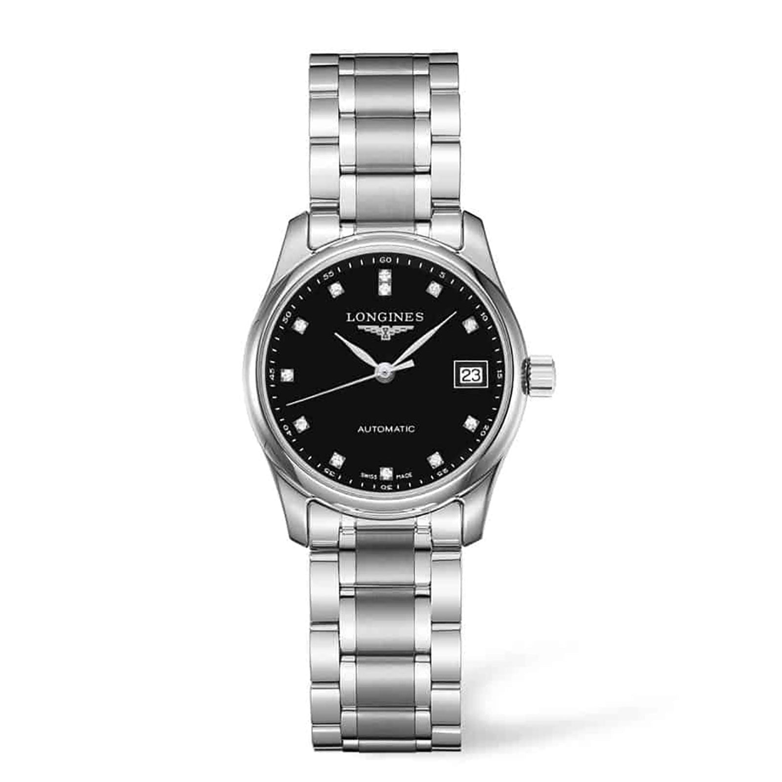 This classic Longines Master Collection automatic watch features a round 29.00mm stainless steel case and water resistance up to 30 meters (100 feet). This watch is enhanced with a black dial, diamond indicators and sapphire crystal. The functionality of this timepiece includes hours, minutes, seconds, and date. Explore the Longines L22574576.