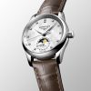 The unique Longines Master Collection automatic watch features a round 34.00mm stainless steel case and water resistance up to 30 meters (100 feet). This watch is enhanced with a white mother-of-pearl dial, diamond indicators and sapphire crystal. The functionality of this timepiece includes hours, minutes, seconds, and date and moonphase at 6 o’clock Explore the Longines L24094874.