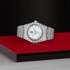 - Dial: Gem-set white mother-of-pearl