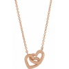 Solid 14 karat rose gold interlocking heart pendant on an 18 inch chain.